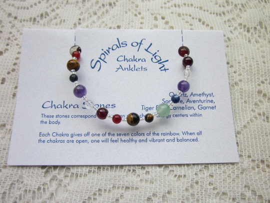 This Chakra Gemstone Anklet was created to help people learn more about the healing qualities of gemstones and how different gemstones can facilitate opening and balancing the chakra energy centers.