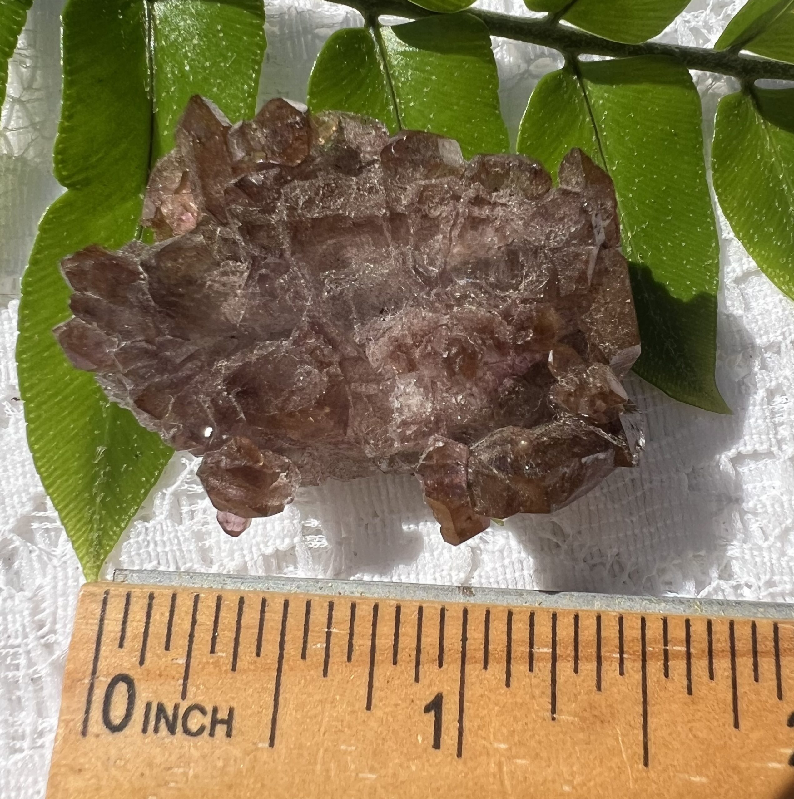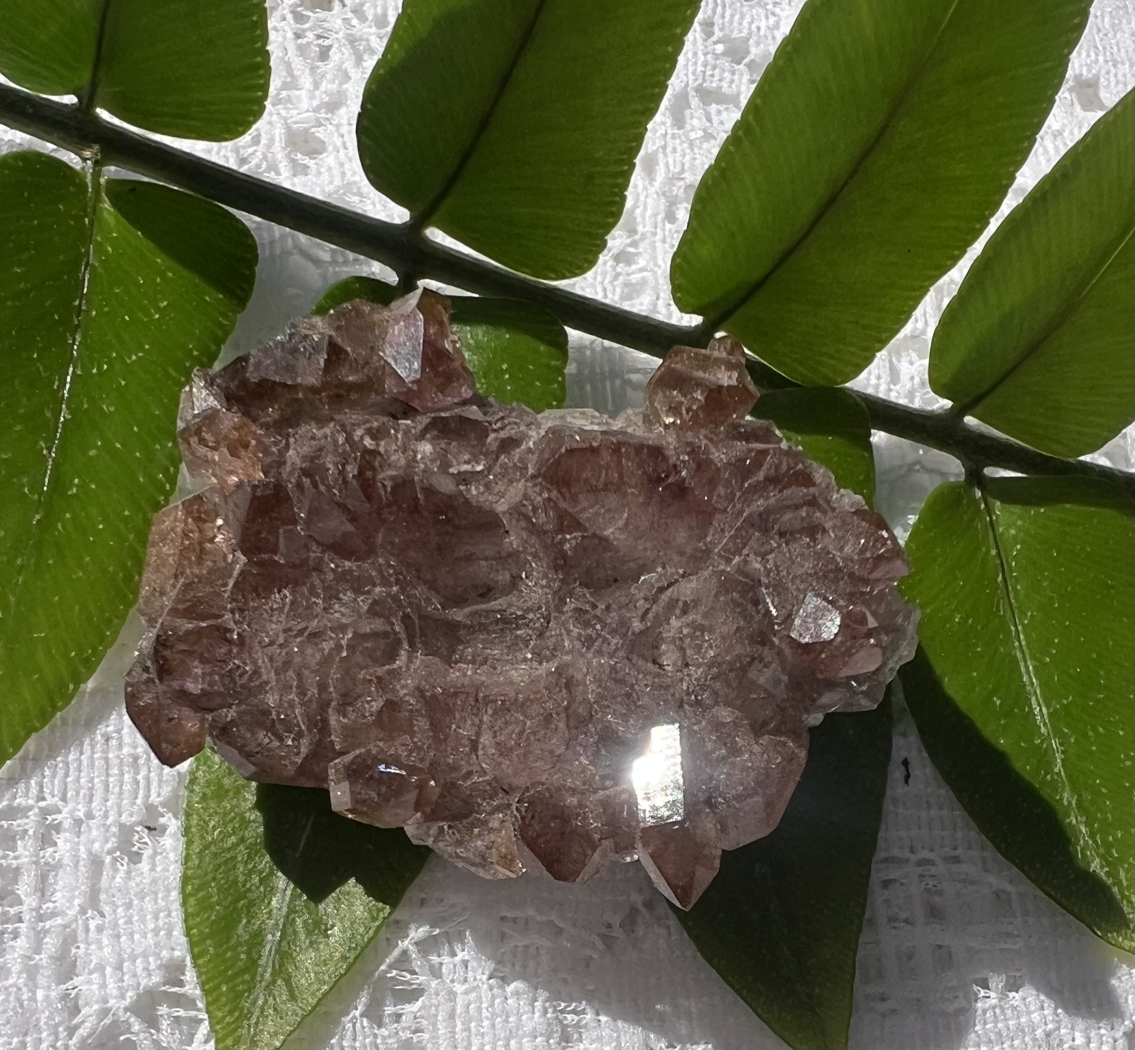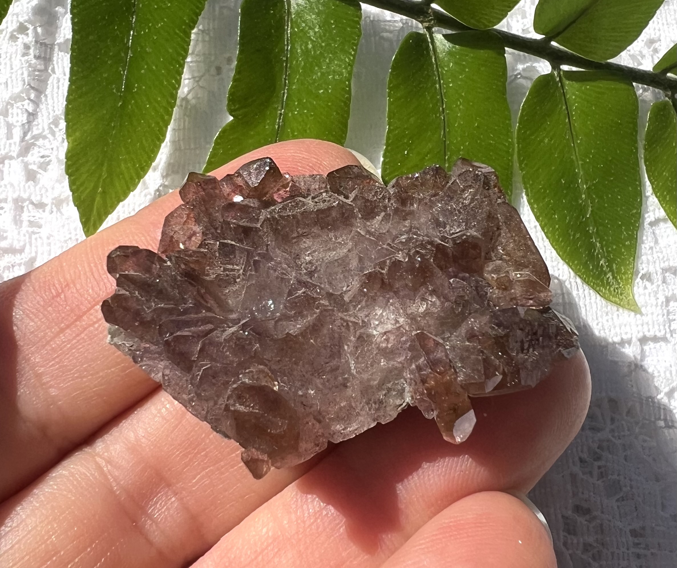 This Elestial Amethyst comes from the mineral-rich regions of India, where crystals form in intricate layers and multiple crystal points.
