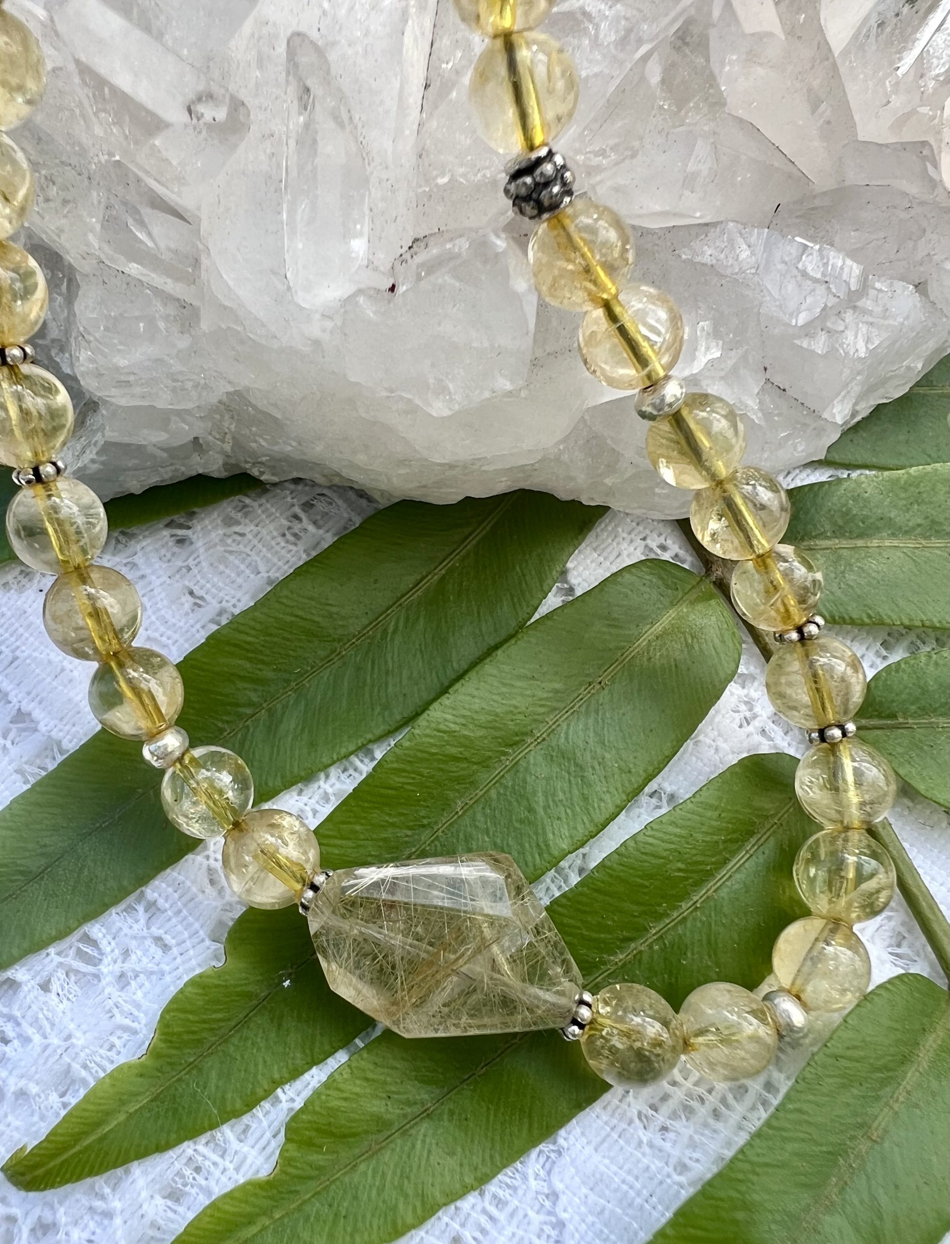 Rutilated Quartz Necklace: Sterling Silver, 6mm Beads, 16 Inch