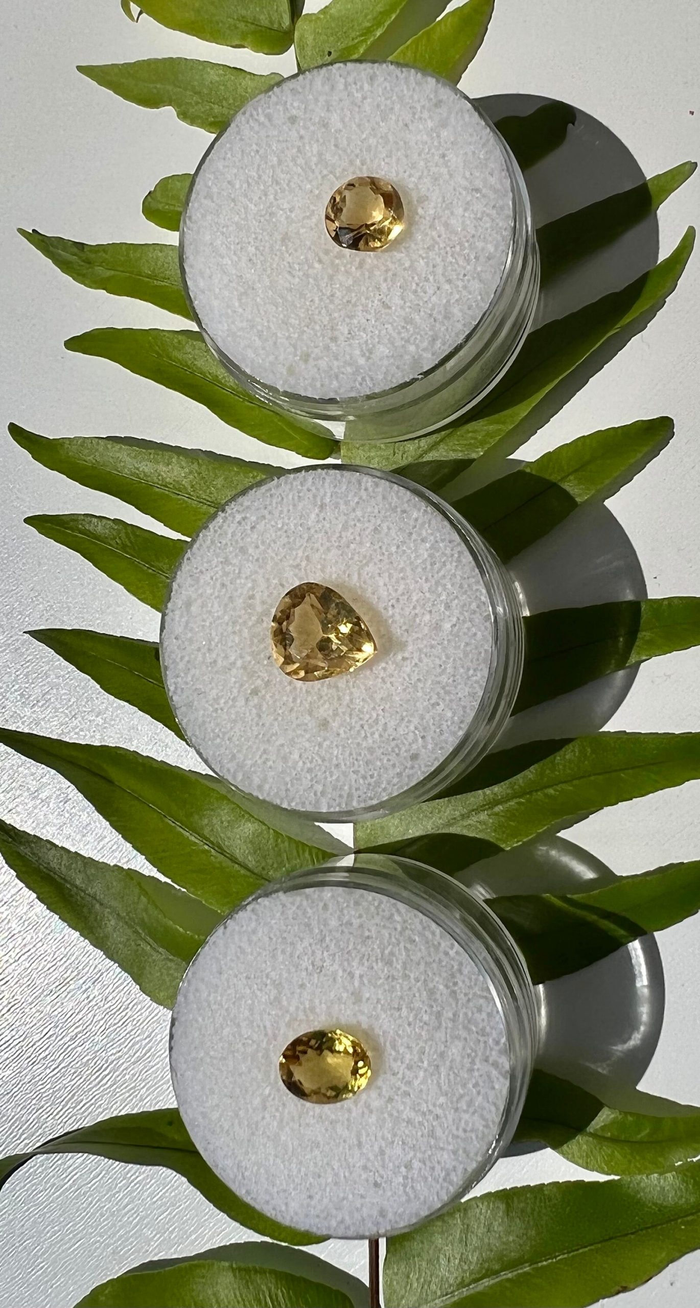You will receive these three different faceted citrines, each in its own plastic case.
